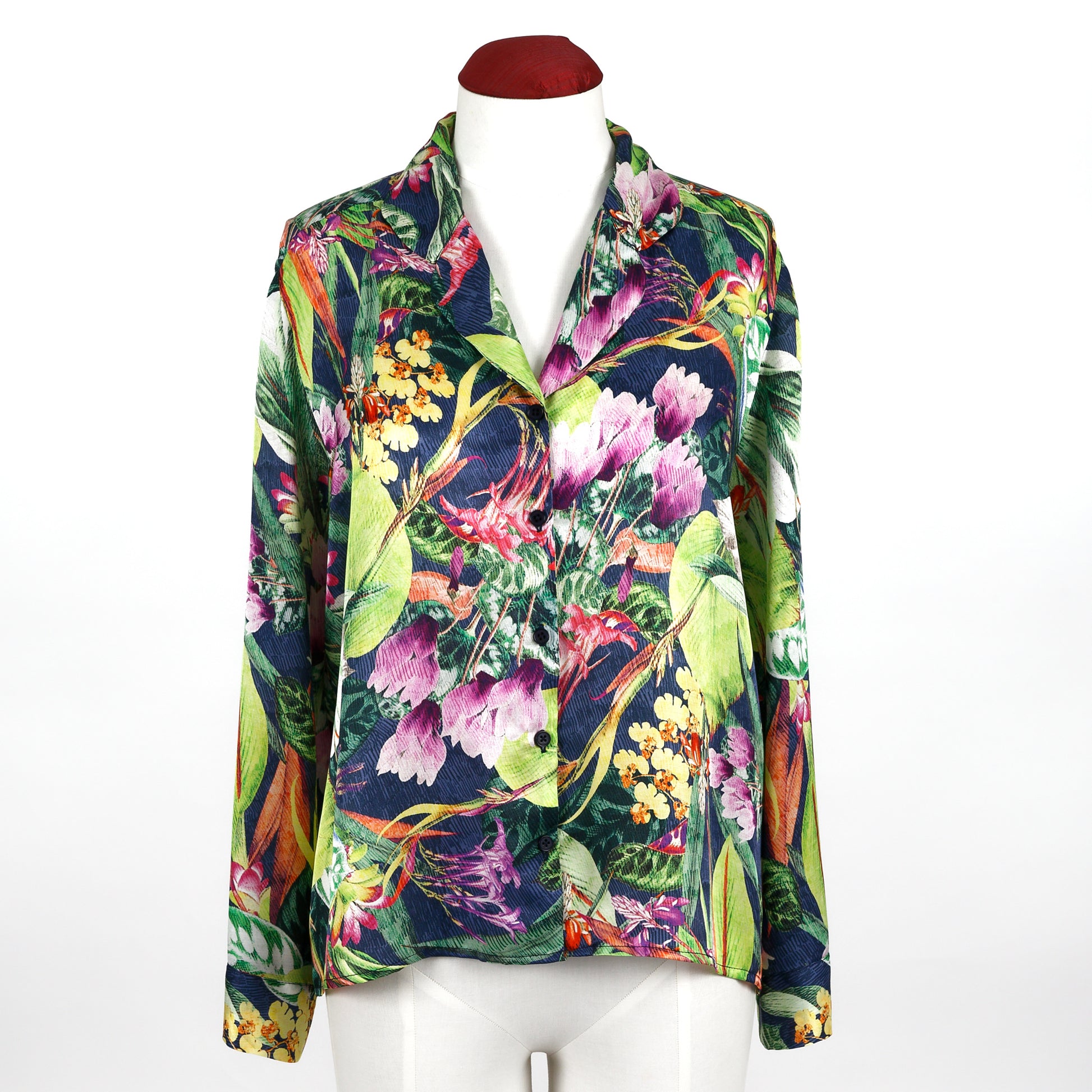 Bringing in a splash of colour! This beautiful silk blended shirt featuring a stunning tropical floral print will be sure to brighten up your lounge wear. The long-sleeved button shirt is soft to wear giving you a blissful night’s sleep. Partner with the Tropical Pants to create the ultimate set.
