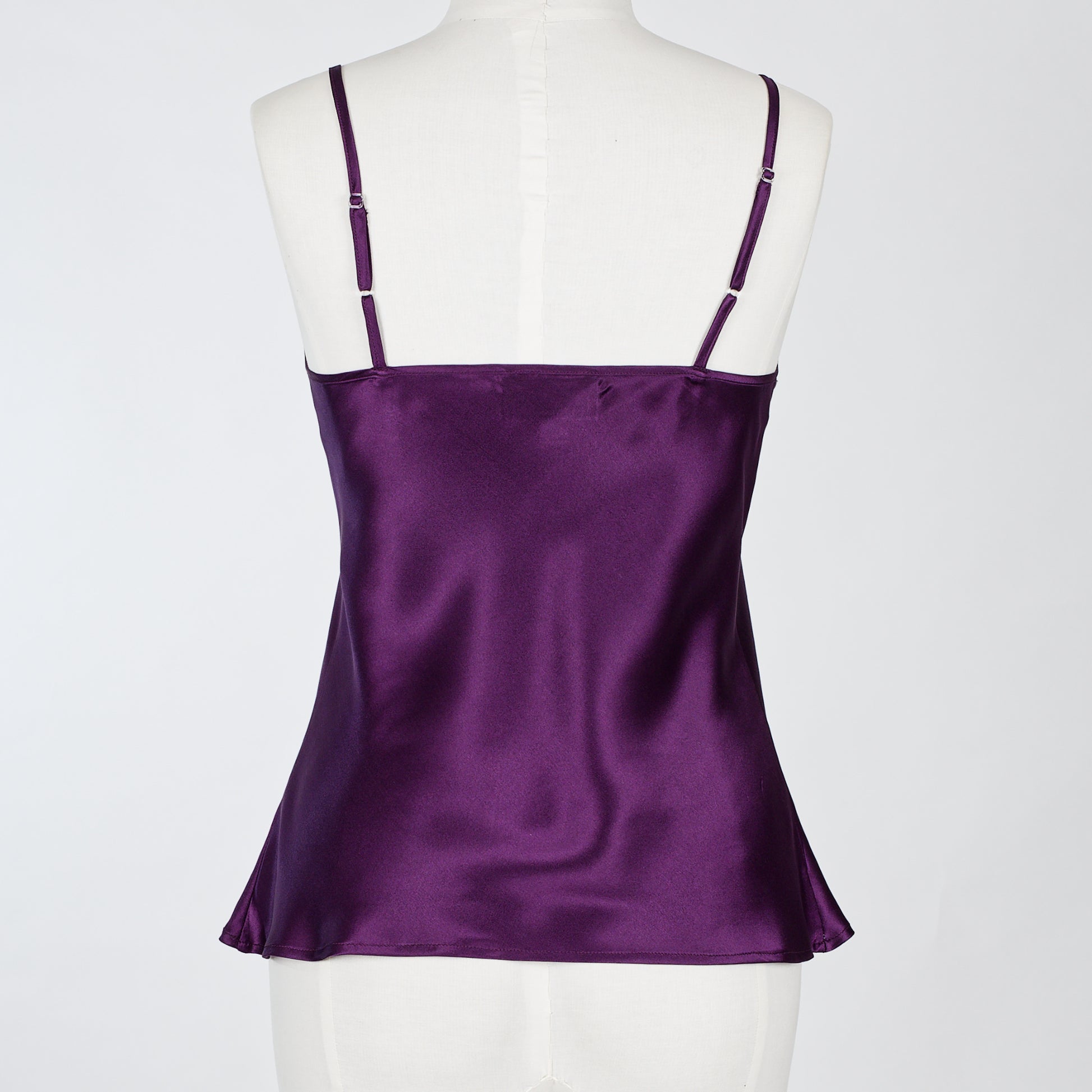 When looking for a dark colour, that is not black, this purple is the ideal choice! Made from the finest silk satin in a bias cut to hug your figure elegantly, this cami is the perfect piece to wear as a layering piece under your winter blouses or to wear as a statement piece on its own under your jacket. Easy fit with adjustable straps.