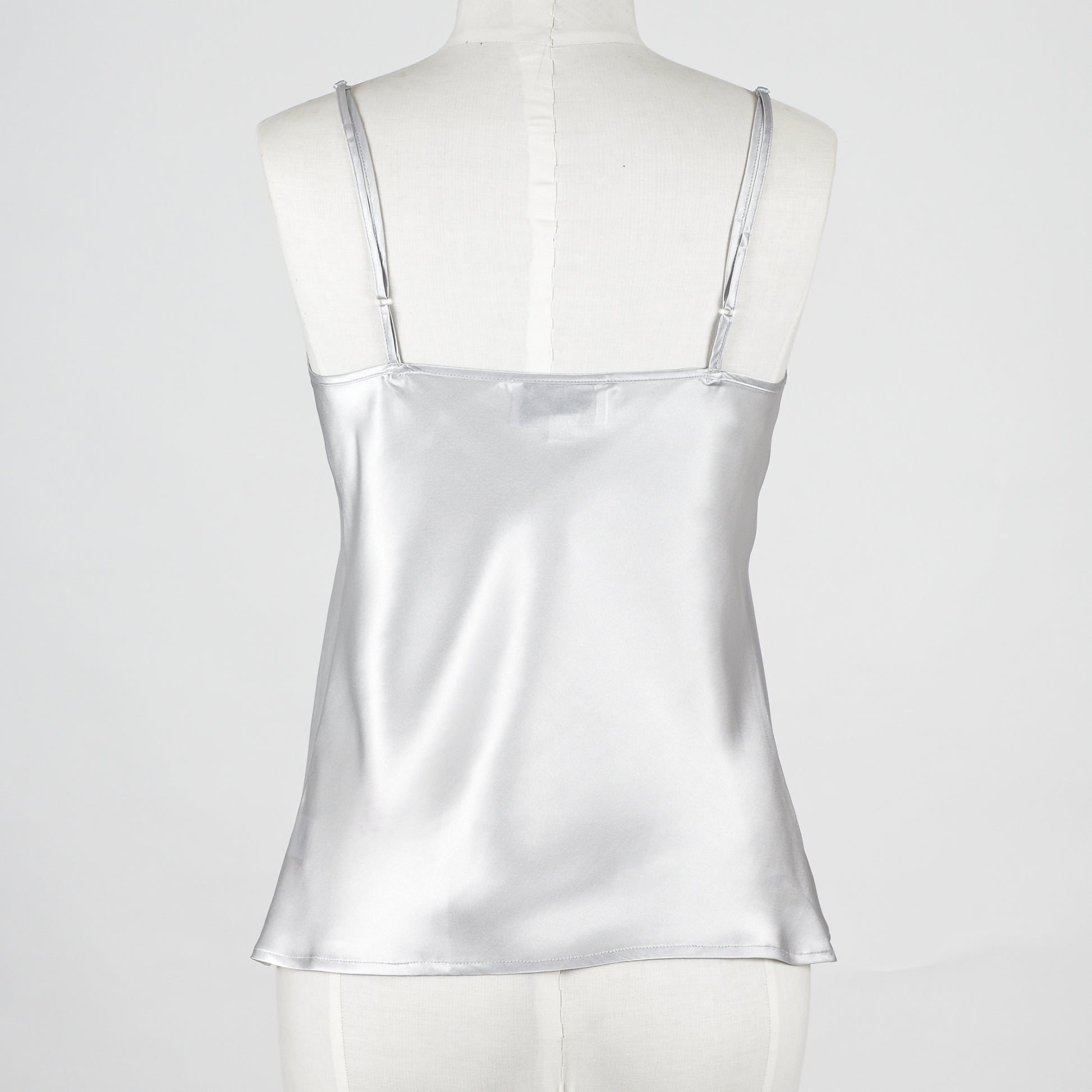 Our pale grey silver silk cami embodies elegance that you can wear day or night. With its delicate colour it’s the perfect piece to layer under lighter coloured garments. The soft 19 momme silk drapes over the body elegantly and the thin adjustable straps make it easy to adjust the cami to be the perfect fit.
