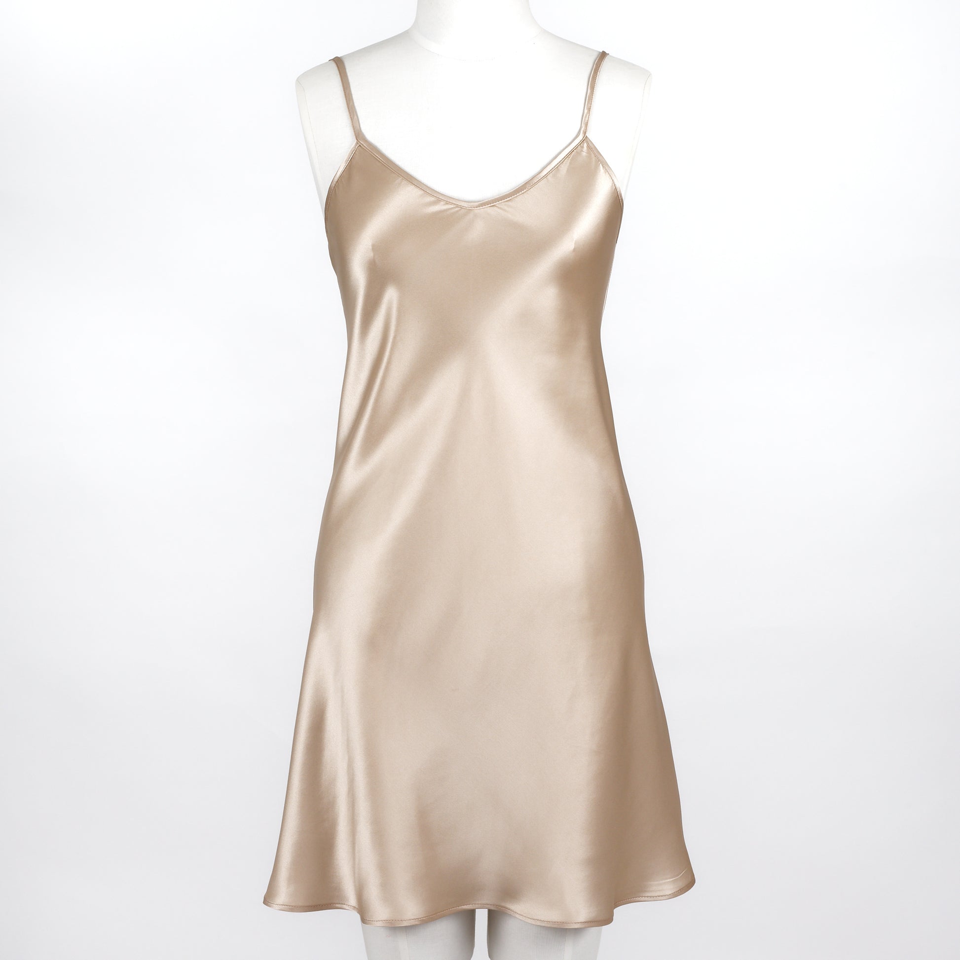 The luxurious fit of our bias-cut silk chemise hugs your body elegantly, ending mid-thigh. It features thin delicate adjustable straps and is professionally finished with French seams. This gorgeous natural toned chemise will become your new wardrobe staple and ultimate companion for a relaxing night’s sleep or for layering it under a dress.
