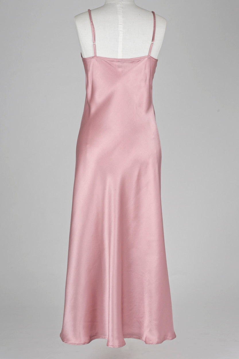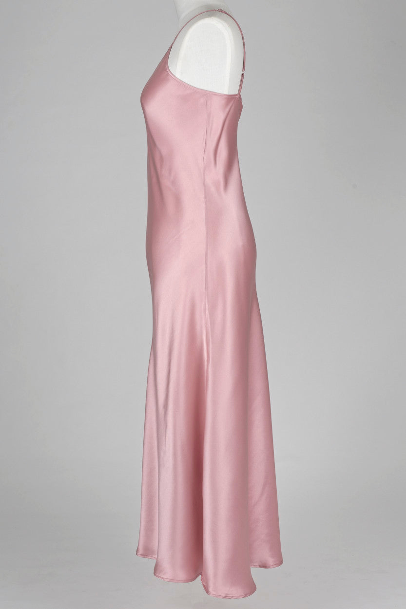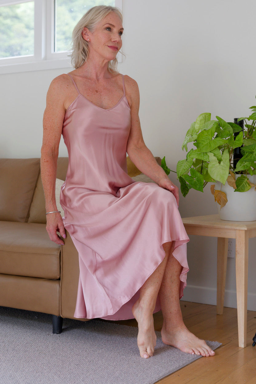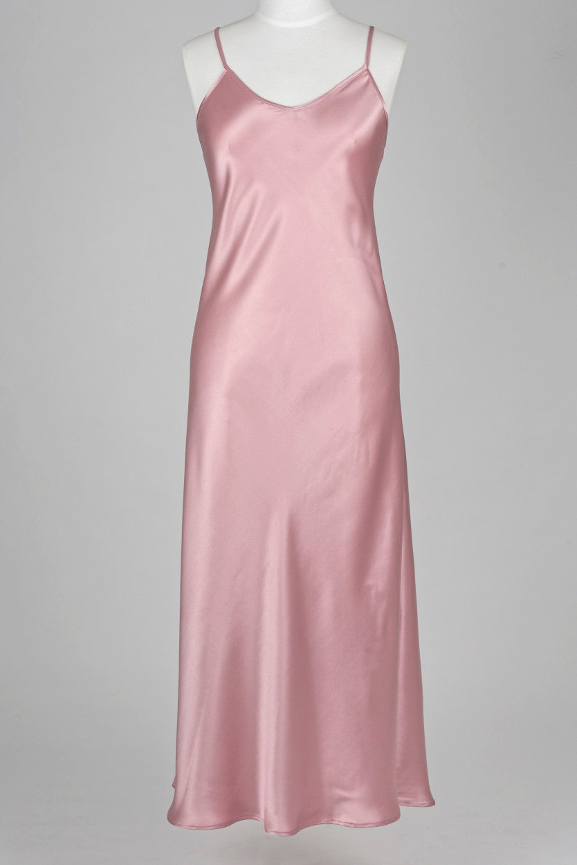 Slip into luxury in our elegant long silk chemise in a beautiful soft rose pink. Crafted from the finest silk satin and cut on the bias, this full-length chemise is designed to drape and flatter your shape with ease. Featuring thin adjustable straps and a graceful silhouette, it moves with you and feels like a dream against the skin. Whether you're dressing for a relaxed evening at home or adding a touch of romance to your sleepwear, this chemise brings effortless beauty to every moment.