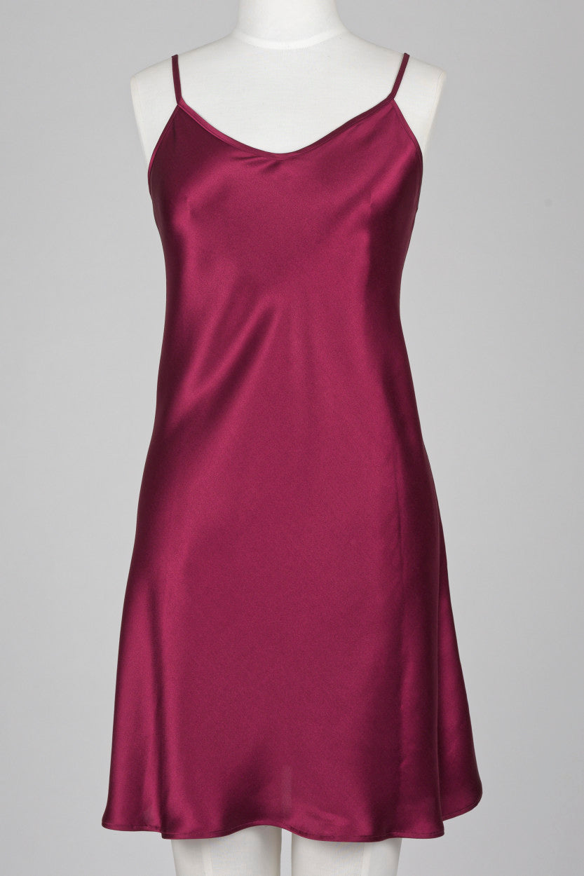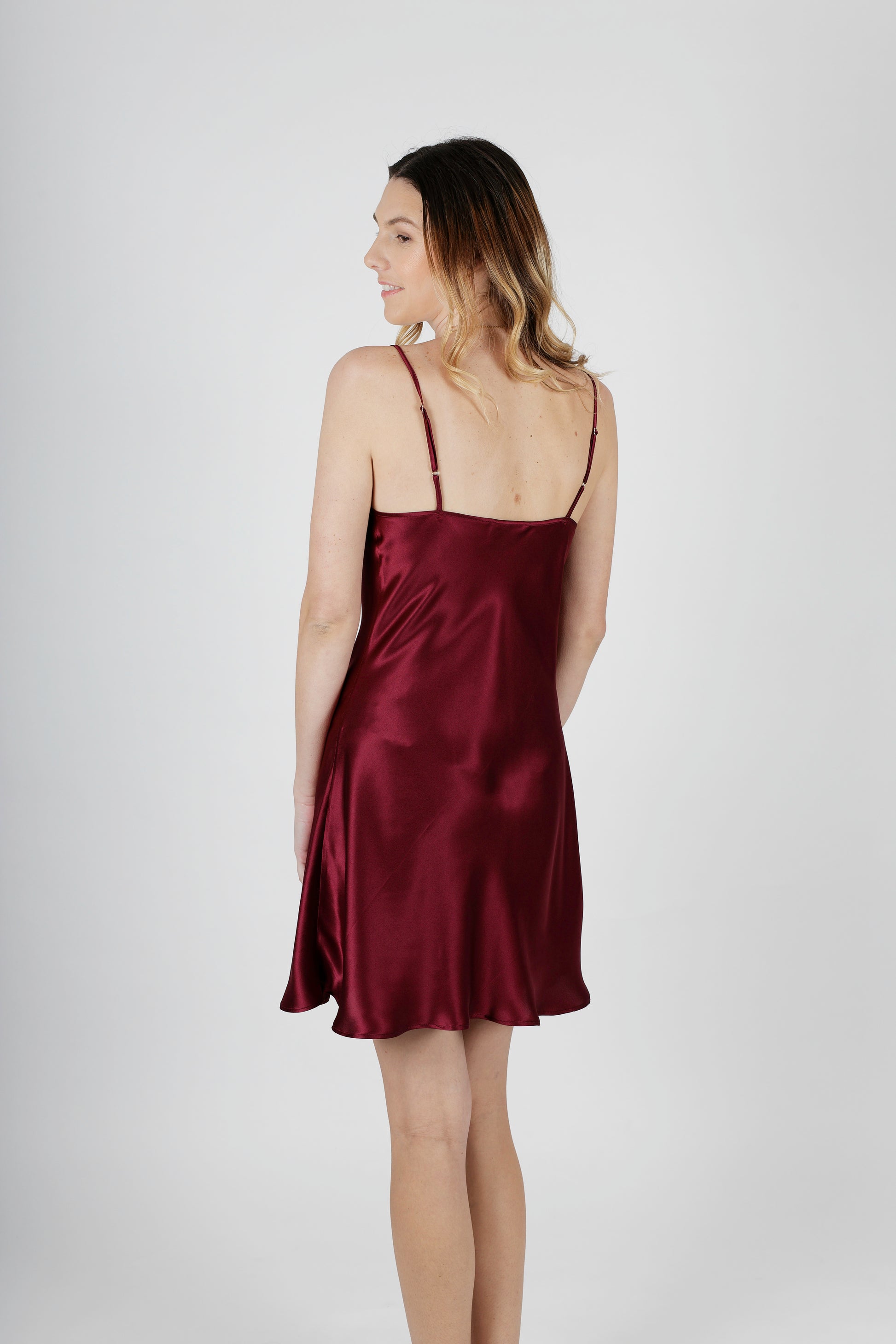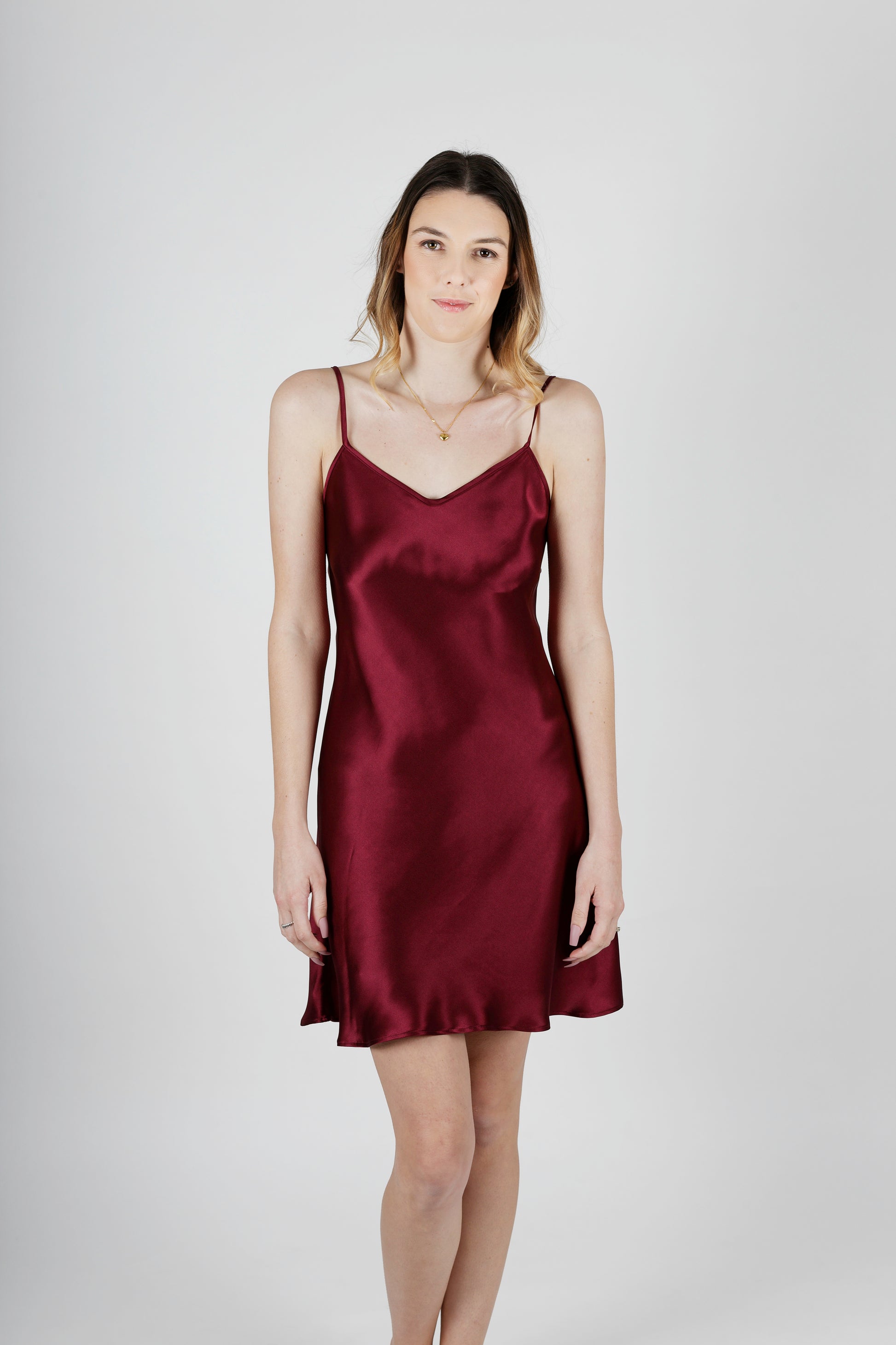 Wrap yourself in rich, indulgent colour with our Merlot Silk Chemise. Crafted in a deep wine-red silk, this elegant bias-cut slip gently skims the body for a flattering, feminine fit. Featuring delicate adjustable straps and finished with fine French seams, it’s as beautifully made on the inside as it is on the outside. Falling to mid-thigh, the Merlot chemise is the perfect blend of sophistication and comfort—luxury you’ll love slipping into night after night.